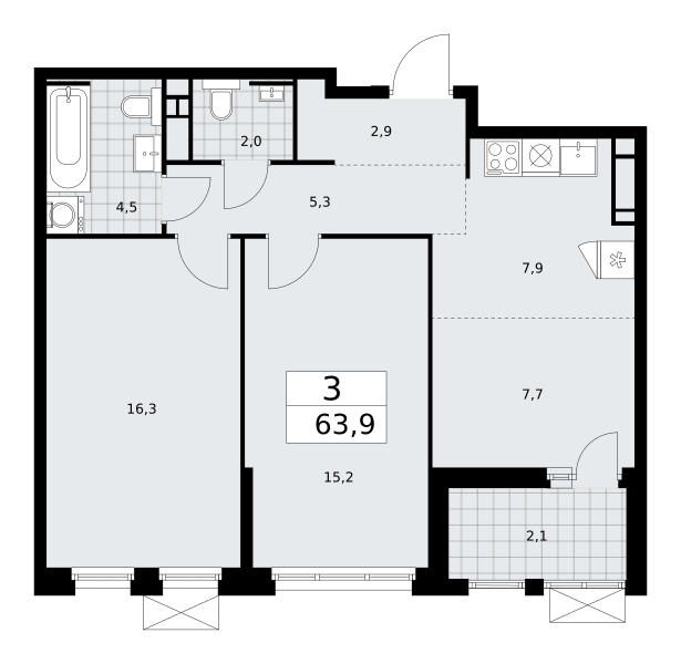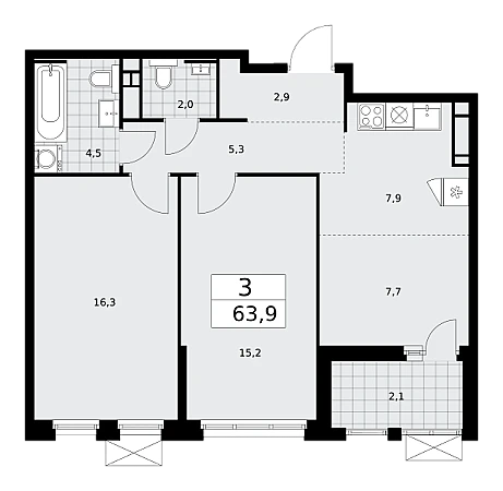 Продаётся 3-комнатная квартира, площадью 63,9 кв. м на 10-м этаже дома бизнес-класса в ЖК "Скандинавия". Квартира с функциональной планировкой: большие окна, высота потолка 3,1 м, балкон, гардероб.
