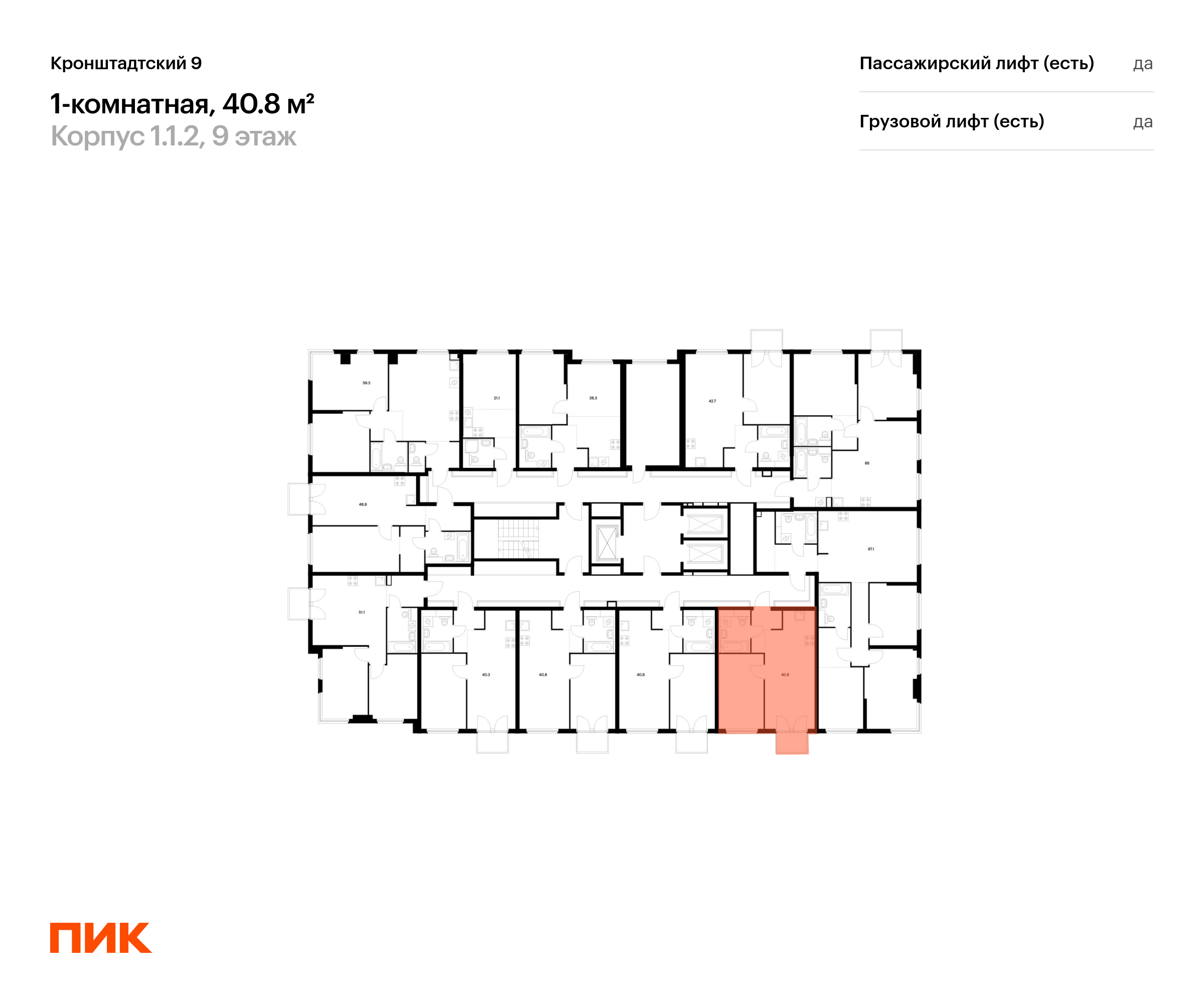 Продаётся 1-комн.квартира площадью 40.80 кв.м на 9 этаже 12 этажного дома (Корпус 1.1.2, секция 2) проекта ПИК Кронштадтский 9. Светлый просторный подъезд на уровне земли, функциональная планировка, большие окна, с отделкой.