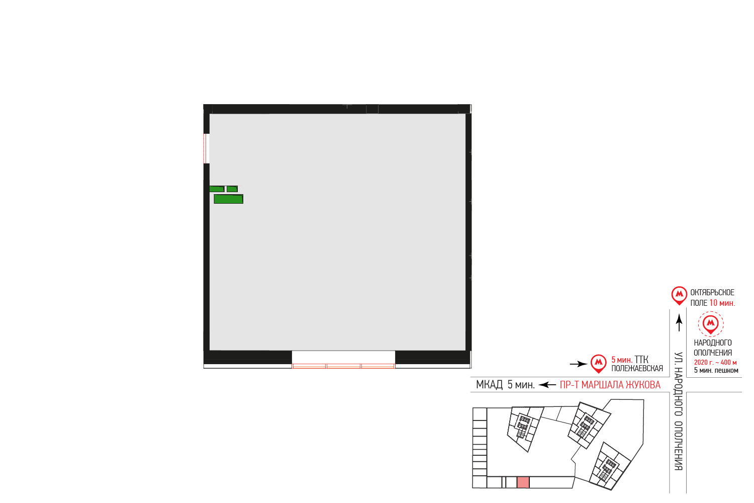 Подъезд на автомобиле к жилому комплексу в районе Хорошево-Мневники обеспечивает пр-т Маршала Жукова. Удаленность от станции метро "Народное ополчение" 8 мин пешком.