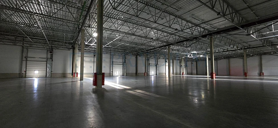 них: Площадь склада по полу - 7 985м2. Мезонин - 1 028м2. Офисы - 850 м2.. Высота потолков - 12 м. Бетонный пол с антипылевым покрытием.
