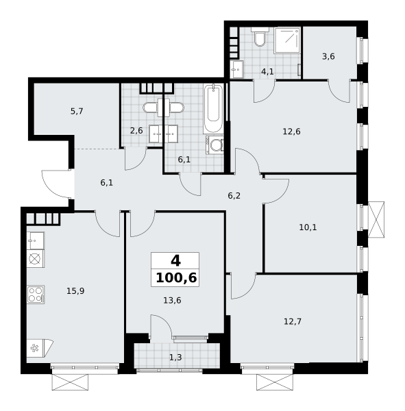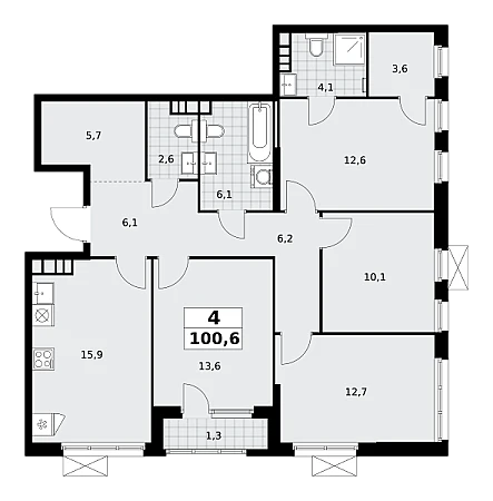 Продаётся 4-комнатная квартира, площадью 100,6 кв. м на 18-м этаже дома комфорт-класса в ЖК "Южные сады". Квартира с функциональной планировкой: большие окна, высота потолка 2,95 м, балкон, гардероб, мастер-спальня.