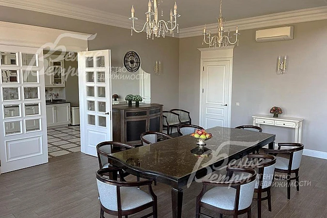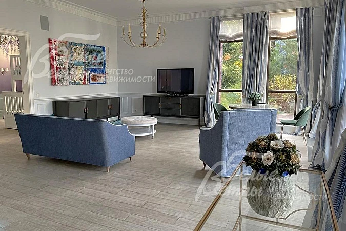 Мебель, оборудование: дом полностью обставлен дорогой, качественной мебелью, выполненной на заказ. Современная кухня со встроенной бытовой техникой SMEG. Стиральная и сушильная машинки Samsung и Miele. Телевизоры, кинопроектор. В гостиной изящная итальянская люстра..