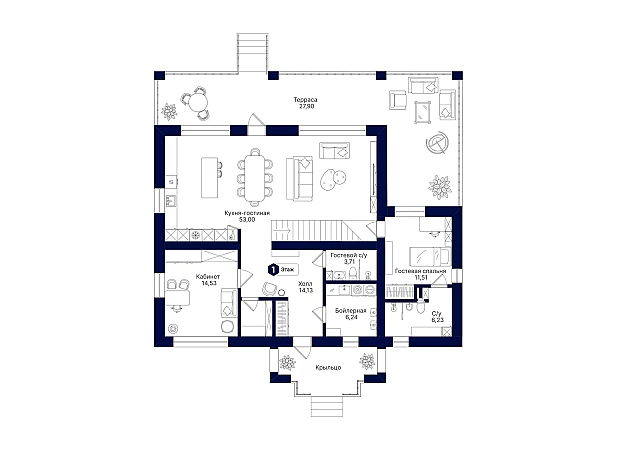 Просторная гостиная, объединённая с кухней (53 кв. м) , со «вторым светом» и панорамным остеклением - идеальное место для семейных встреч и дружеских посиделок. Здесь каждый почувствует себя как дома.