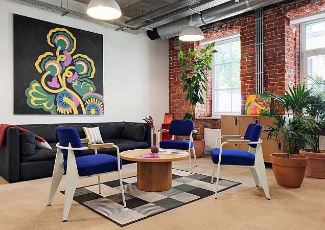 Так же есть зона ресепшн, мягкая зона отдыха и встреч гостей, гардеробная, переговорные комнаты, оборудованная кухня с зоной приема пищи, санузлы.