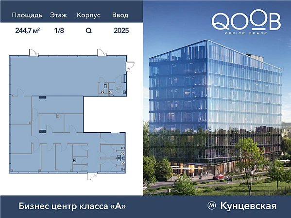 Помещение свободного назначения 244,7 м² на 1-м этаже в новом бизнес-центре А класса QOOB