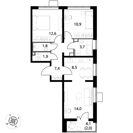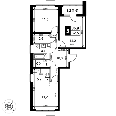 Планировка квартиры продуманная и функциональная. Три комнаты позволят комфортно разместить всю семью, создать отдельные пространства для отдыха, работы и детских игр. Раздельный санузел — ещё одно преимущество данной квартиры, которое обеспечит удобство для всех членов семьи.