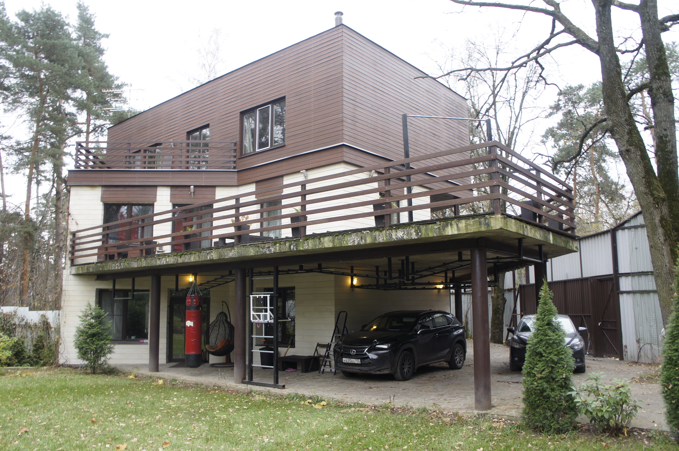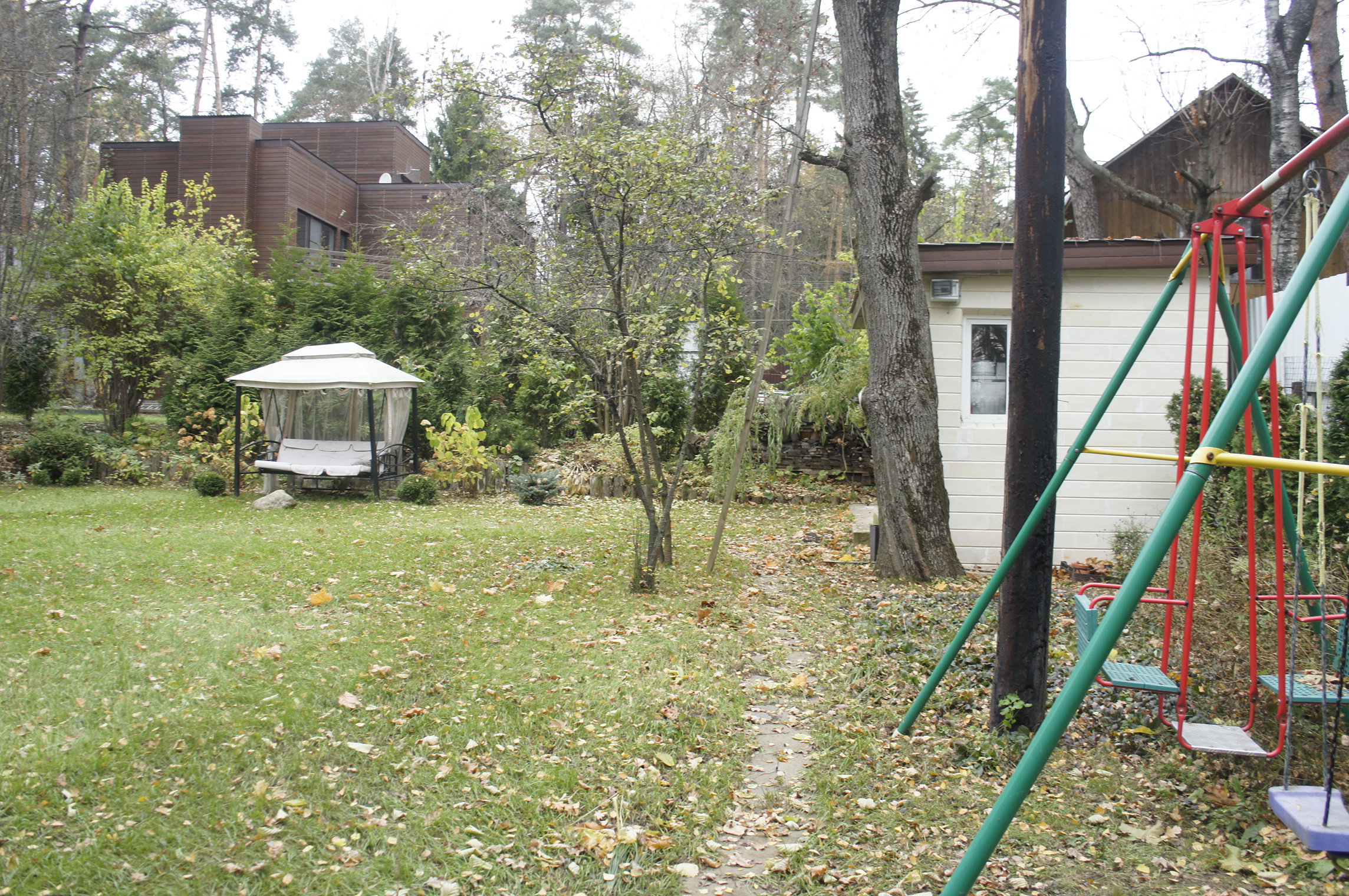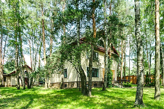 На большом лесном участке расположены гараж на 2 м/м с квартирой для персонала, беседка с барбекю.
