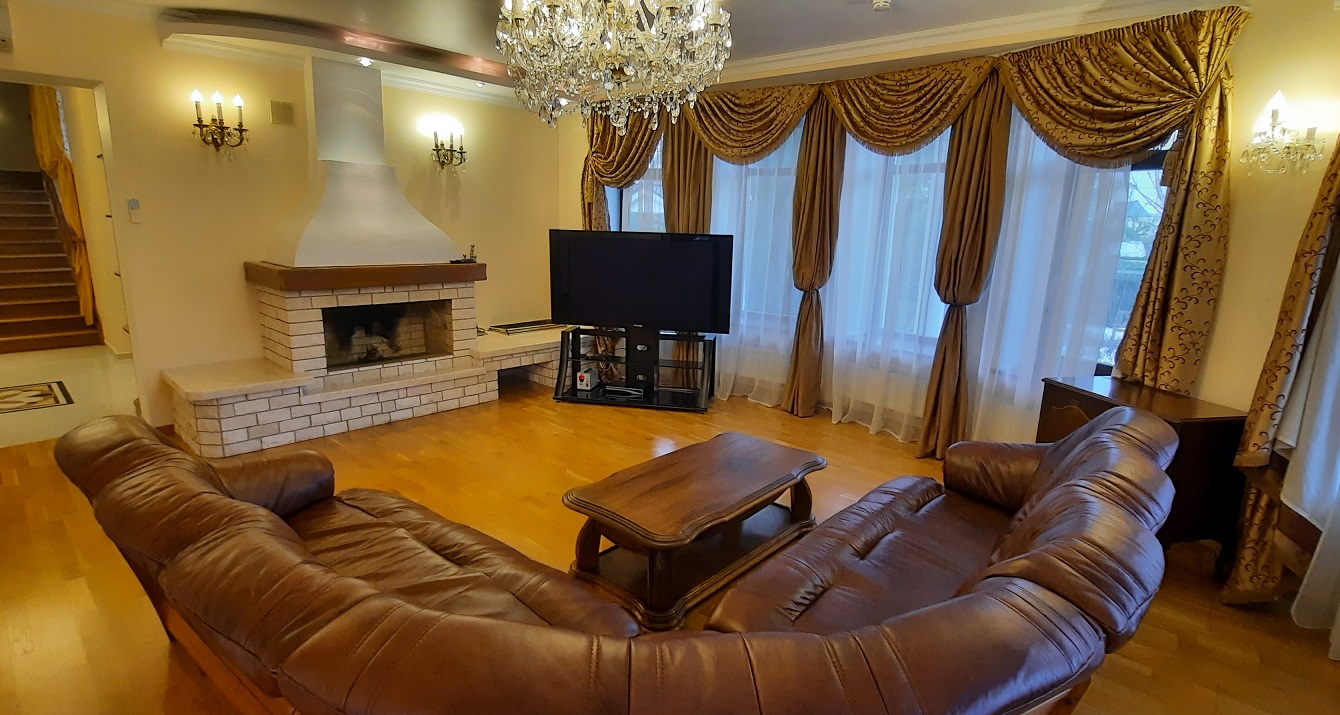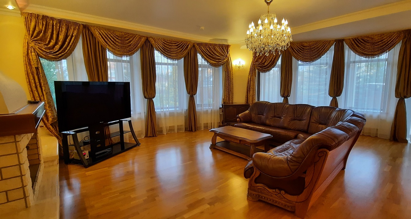 пос. Николина гора, КП Никологорское. Охраняемый Коттеджный поселок. Рублево-Успенское 24 км. или Ново-Рижское 26 км. Площадь дома - 500 кв.м. Материал дома - Кирпич. Количество этажей - 2. Спален - 4. Санузлов - 4. Площадь участка - 30 соток. Тип участка: лесной. Оснащение дома: Стиральная машина, посудомоечная машина, кондиционер, мебель, мебель на кухне, отопление, подогрев полов, канализация, кабельное/спутниковое тв, высокоскоростной интернет, камин, cауна. Также: гараж, стоянка, барбекю, беседка, домик для охраны, домик для персонала, балкон.