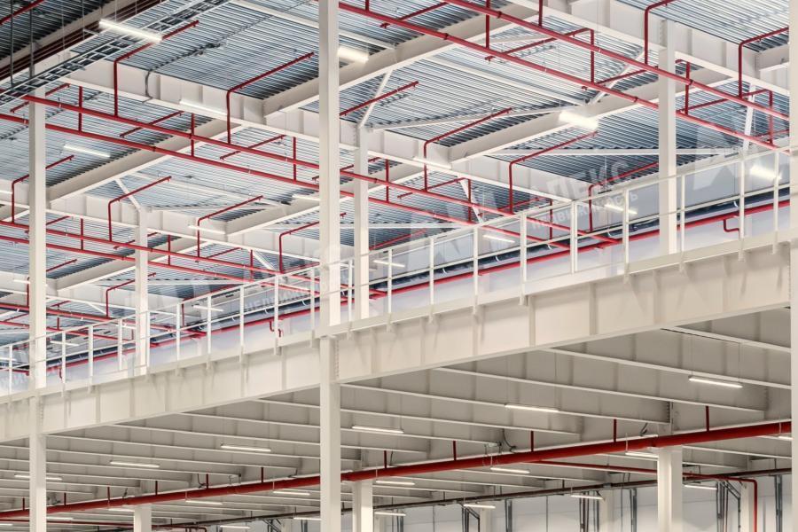 Энергосберегающая система отопления с газовыми кондиционерами-руфтопами (при -35 С вне здания: +16 С на складе и +20 С в офисе), ESFR-25 противопожарная и сплинкерная система, оптико-волоконная линия связи, выделенная мощность 1,6 МВт.