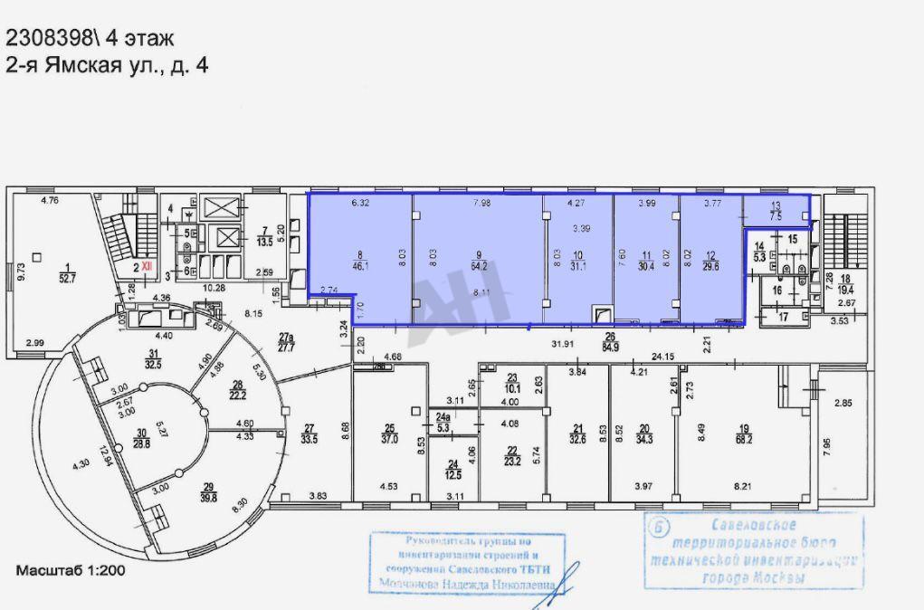 Снять офис 265 м² в БЦ на 2-й Ямской