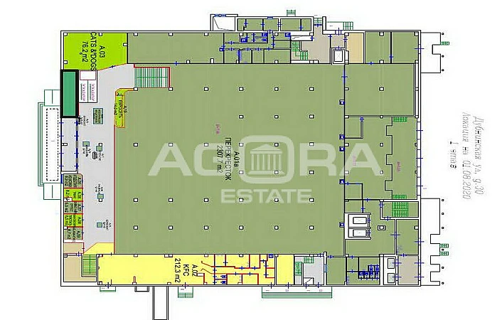 Площадь - 22 м2, 1 этаж, около входа в ТЦ и эскалаторов на 2-й этаж. Планировка открытая, с ремонтом.