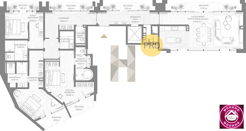 Купить 3к квартиру 130 м² в ЖК Nicole (Николь)