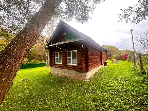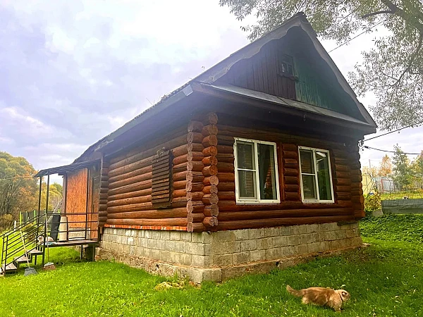 Продается добротный бревенчатый дом, пригодный для постоянного проживания круглый год! Площадь дома около 50м2, состоит из жилой комнаты, кухни –столовой, просторной прихожей и совмещенного санузла. Фундамент высокий (поднимали и дополнительно укрепляли), все коммуникации утеплены и пригодны для использования не только летом, но и в холодное время года. Вода в дом заведена от колодца, установлен бойлер для обогрева воды. Отопление разведено по дому (батареи) от электрокотла. Электричество – 15 квт (заведено в дом). В ближайшей перспективе газификация деревни. Дом полностью готов для проживания, после продажи из мебели и техники в основном все остается. Супер приятный бонус - под клиента собственник готов обновить покраску стен внутри дома (при необходимости). Окна в доме пластиковые. Участок правильной формы 19 соток, огорожен по периметру, есть въездные ворота. Регулярно окашивается, посажено много плодовых кустов и деревьев, а именно яблони, груши, сливы, малина, смородина, приносящих хороший урожай. Есть небольшая теплица и несколько грядок с плодородным грунтом (завозили дополнительно). Из дополнительных построек на участке – большой хозблок для хранения инвентаря.