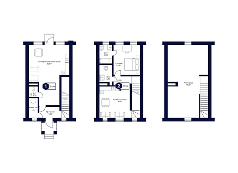 1-й этаж - холл-12.7, кухня, санузел, гостиная 31.8 кв.м, санузел 6.3, зимний сад-13.4, холл-6.4.