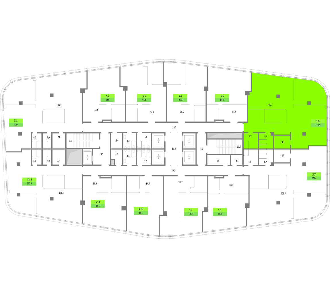 На сегодняшний день бизнес-центр распродан более чем на 85%, но в наличии есть имиджевые офисы нового поколения от 80 м² до возможности приобрести целый этаж.