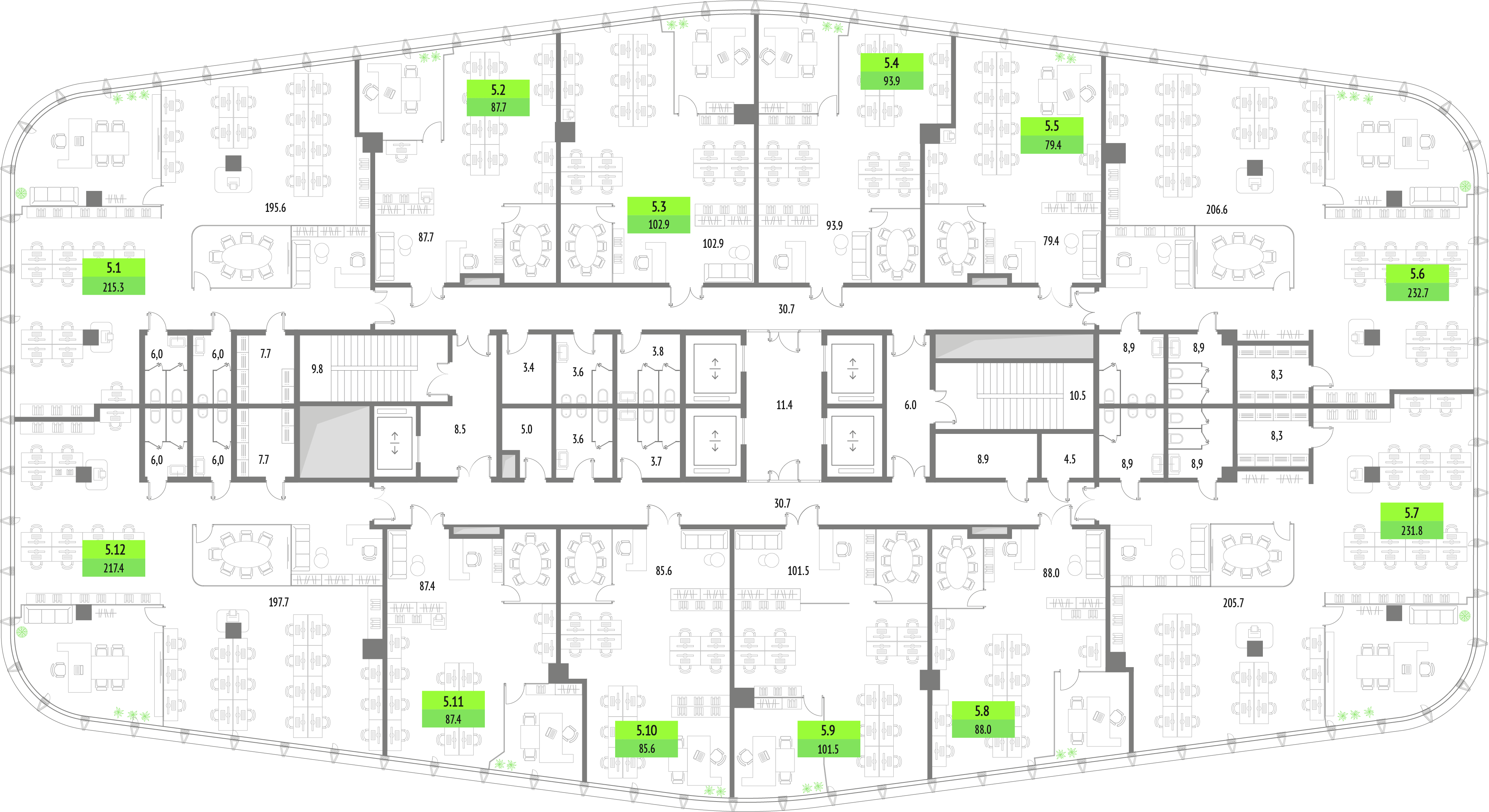 На сегодняшний день бизнес-центр распродан более чем на 70%, но в наличии есть имиджевые офисы нового поколения от 79 м² до возможности приобрести целый этаж.