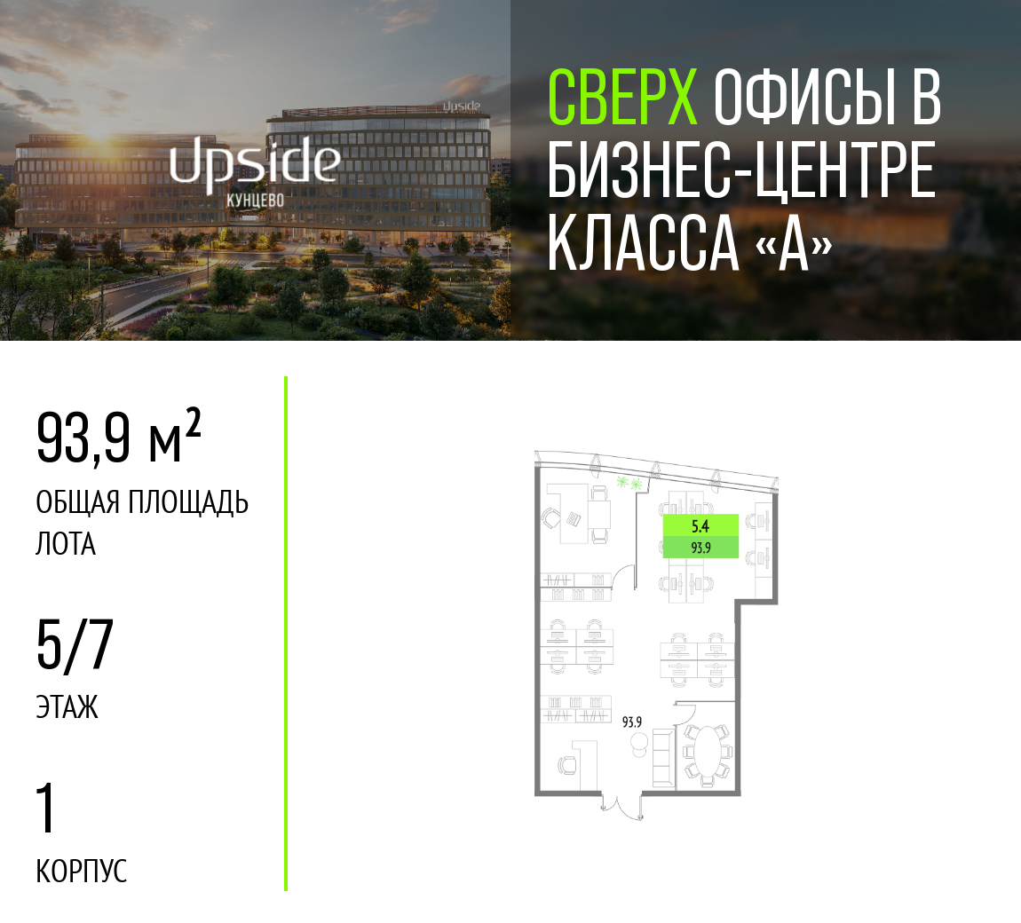 Купить офис 93 м² в БЦ Upside Kuntsevo
