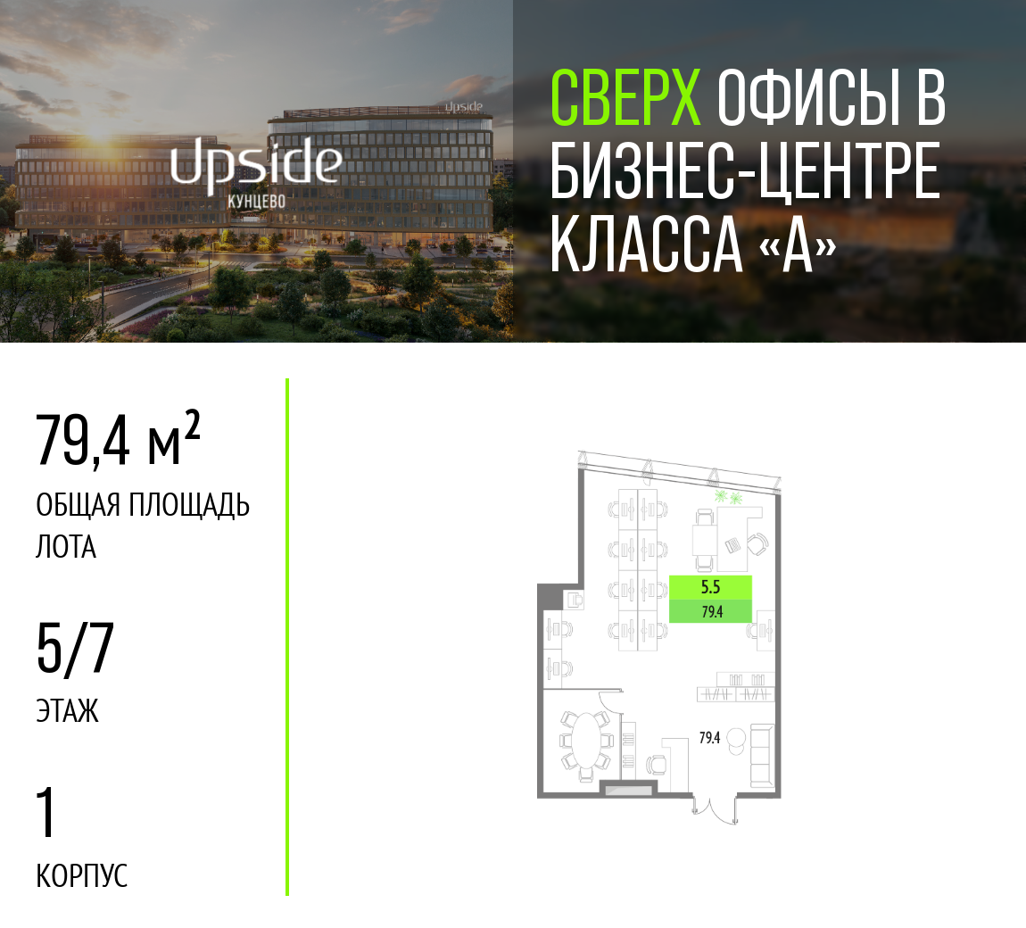 Купить офис 79 м² в БЦ Upside Kuntsevo