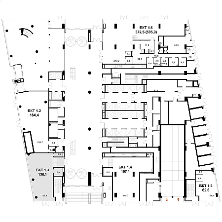5 лифтовых групп (в том числе 17 грузопассажирских лифтов)