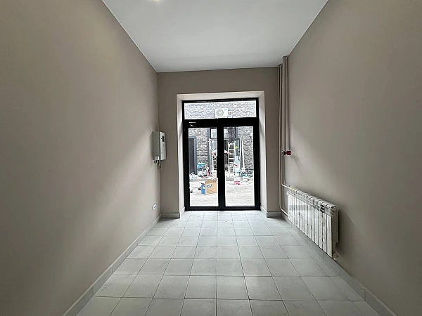 Помещение с полной отделкой. Высота потолков 4 м. Комнат в помещении - 1, одна мокрая точка, тип окон - витринные, окна выходят окна во двор.