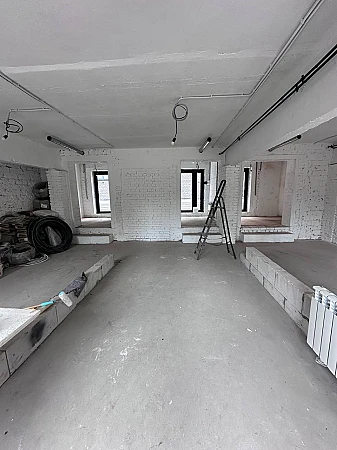 Помещение с полной отделкой. Высота потолков 4 м. Комнат в помещении - 1, одна мокрая точка, тип окон - витринные, окна выходят окна во двор.