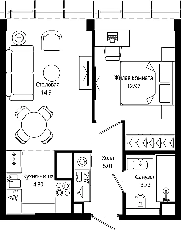 Купить 1к квартиру 41 м² в ЖК MOD (Мод)