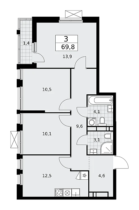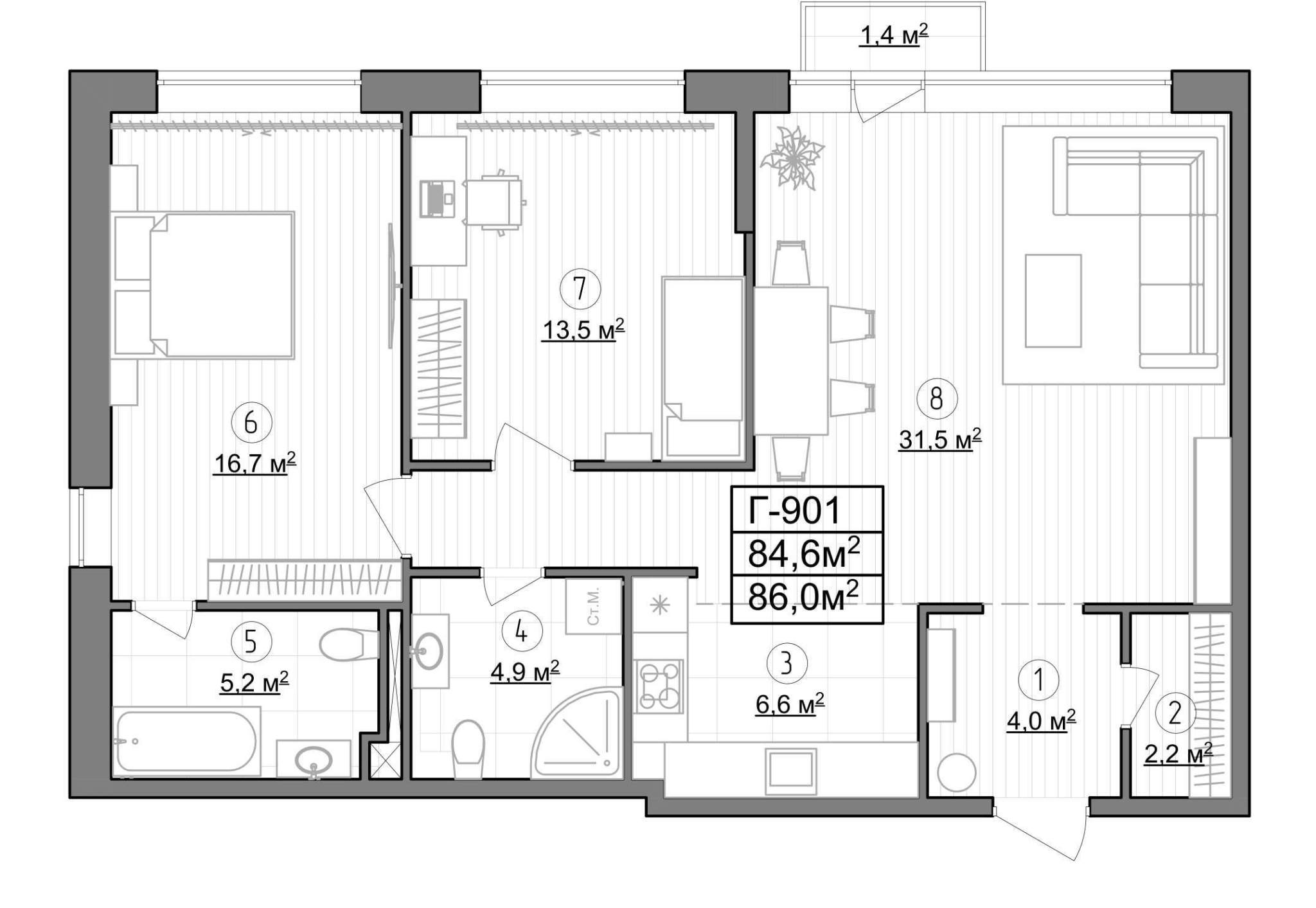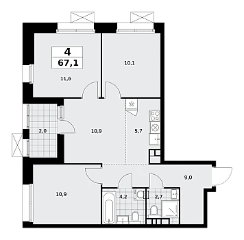 - Кухня-ниша, гостиная 31.5 м2