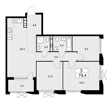 В продаже трехкомнатные апартаменты на 9 этаже в ЖК LES, расположенном на границе Битцевского лесопарка.