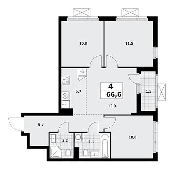 Купить 3к квартиру 86 м² в апарт-комплексе LES (Лес)