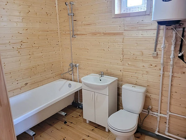 Характеристики объекта: - Один собственник, без обременений - Двухэтажный дом свободной планировки - Фундамент — монолитная плита - Стены — газосиликатный блок с утеплителем (минвата) - Внешняя отделка — сайдинг - Внутренняя отделка — вагонка - Высота потолков — 2.8 м - Окна — ПВХ - Канализация — септик, установлены унитаз, раковина, ванна - Водонагреватель (бойлер) установлен - Электропроводка по всему дому - Отопление установлено - Электричество — 15 кВт - Участок огорожен забором, возможна его увеличение - Круглогодичный подъезд