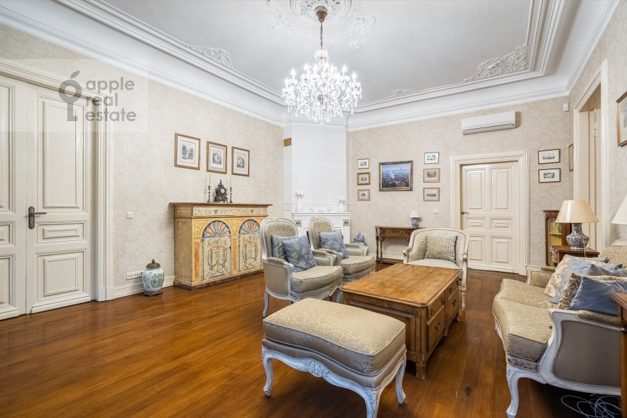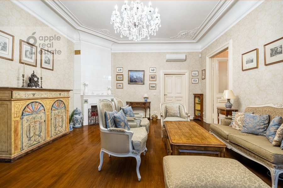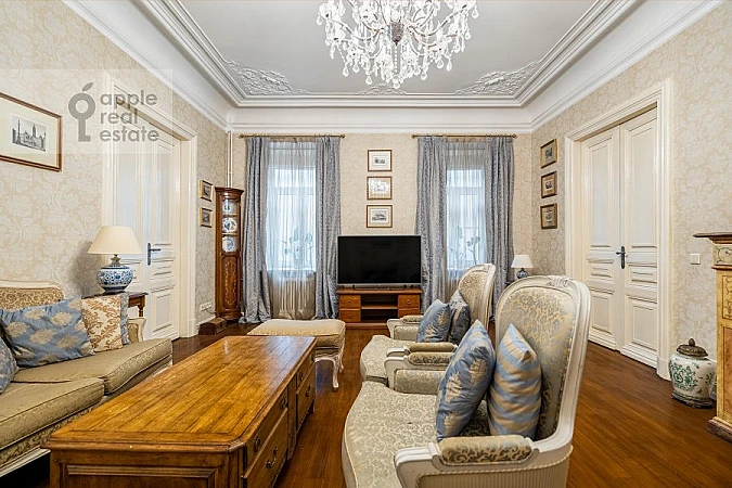 Чудесная 5-комнатная квартира в дореволюционном особняке, расположенная на 2 этаже 5 этажного здания. Спален: 3. Ванная комната + гостевой санузел. Общая площадь: 155 кв.м. Потолки 3.2 м. Ремонт в классическом стиле. Квартира полностью с мебелью, вывоз обсуждается. Посудомоечная машина, холодильник, кондиционеры, ванна, стиральная машина с сушкой, подогрев полов, телевизор, высокоскоростной интернет. Гардеробная комната. Домофон. Охраняемый двор и стихийный паркинг. Окна выходят на обе стороны. Можно с детьми, можно с животными.