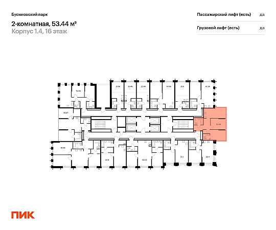 Продаётся 2-комн.квартира площадью 53.44 кв.м на 16 этаже 32 этажного дома (Корпус 1.4, секция 2) проекта ПИК Бусиновский парк. Светлый просторный подъезд на уровне земли, функциональная планировка, большие окна, с отделкой.