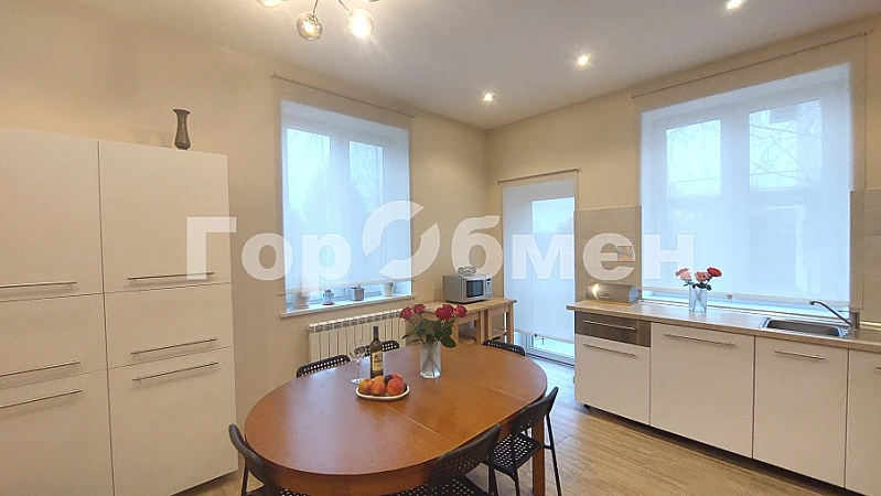 Хорошая планировка в доме: 1-й этаж – большая прихожая, кухня-столовая 21 кв.м. с выходом на участок, гостиная 26 кв.м., санузел, гардеробная, бойлерная; 2-й этаж - 3 спальни (25+23+7) кв.м., холл 10 кв.м., санузел 6 кв.м., гардеробная, балкон.