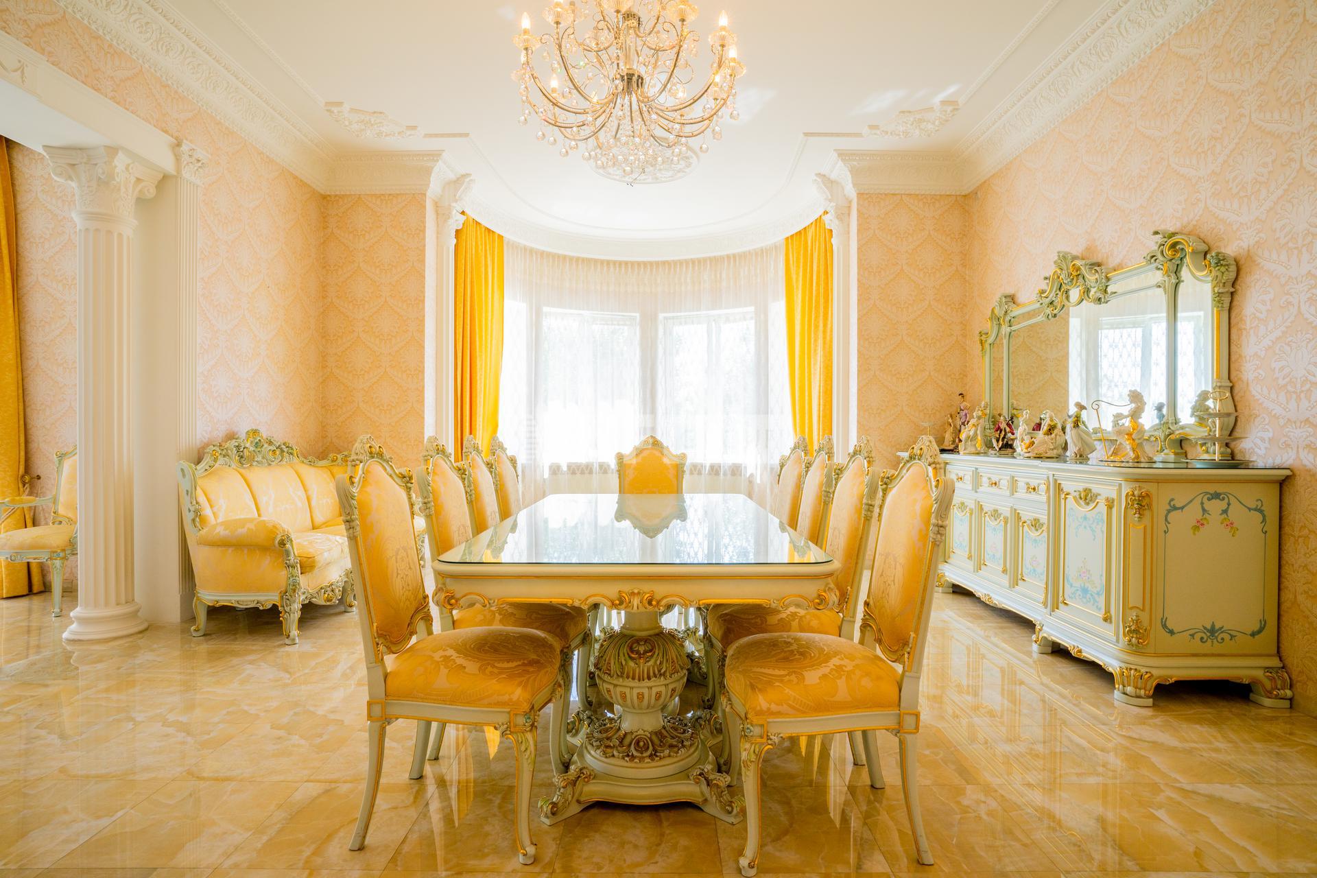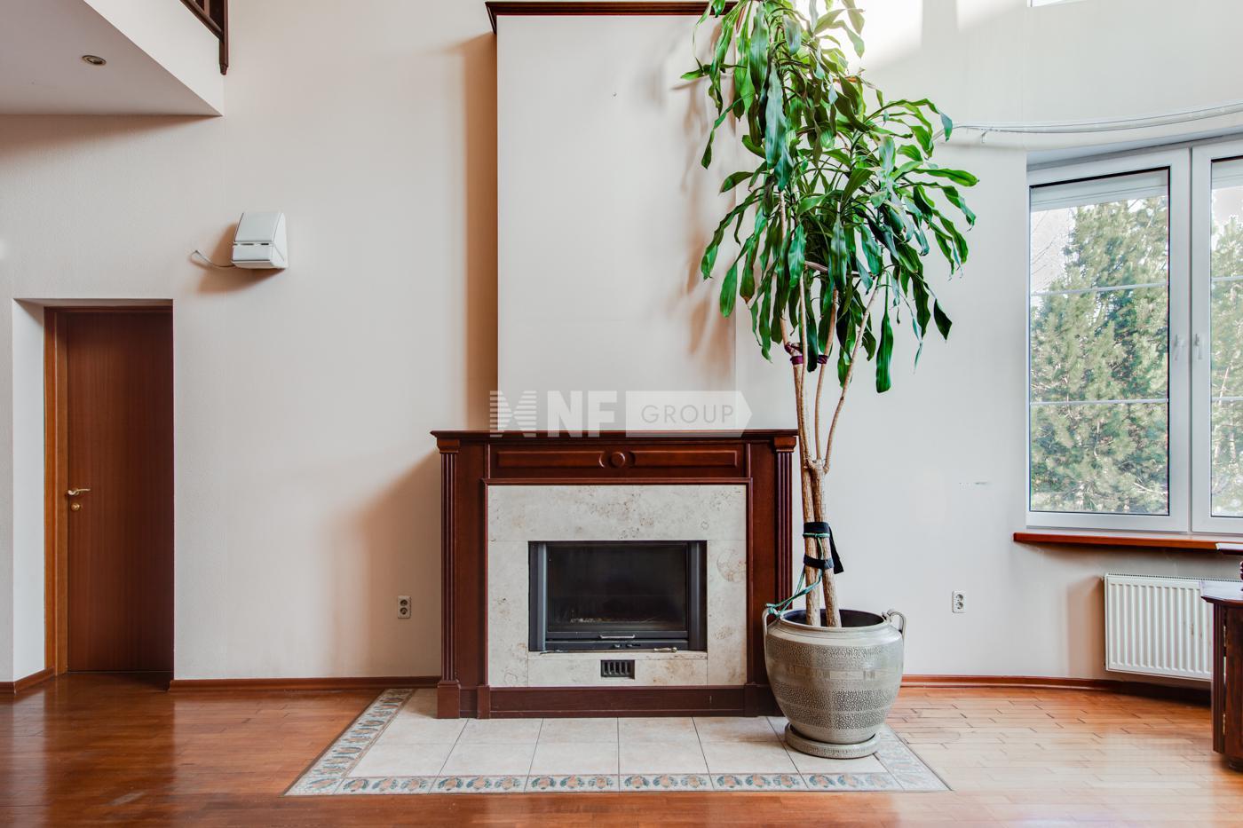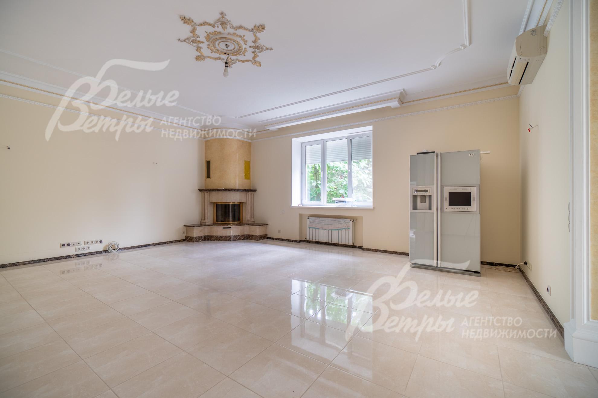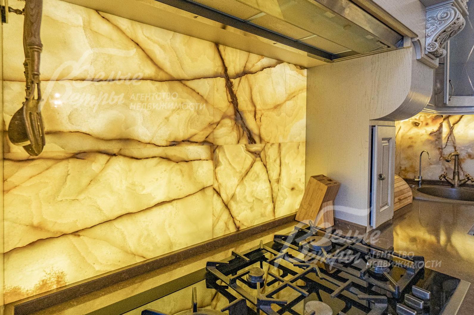 Мебель, оборудование: в мастер-спальне и детских комнатах антикварная мебель от итальянского производителя элитного сегмента SILIK. Также есть мебель от американского бренда CHESTER из кожи бизона. Полностью оборудованные гардеробные. Антикварные бронзовые светильники из Ирана и Европы. Фарфоровые люстры в детской. Антикварные столики и зеркала. В доме 4 кухни: Главная кухня выполнена в классическом стиле по эскизам Скаволини с дубовыми фасадами и фартуком из оникса с подсветкой (этим же ониксом отделан алтарь храма в МГИМО), оснащена встроенной техникой NEFF. Холодная кладовая при кухне продумана до мелочей. Имеет винный шкаф. Столовая группа в стиле барокко на 10 персон (SILIK). Шторы, текстиль (итальянский) и мебель в гостиной выполнены в едином стиле. В лестничном холле действующий фонтан из розового корейского мрамора..