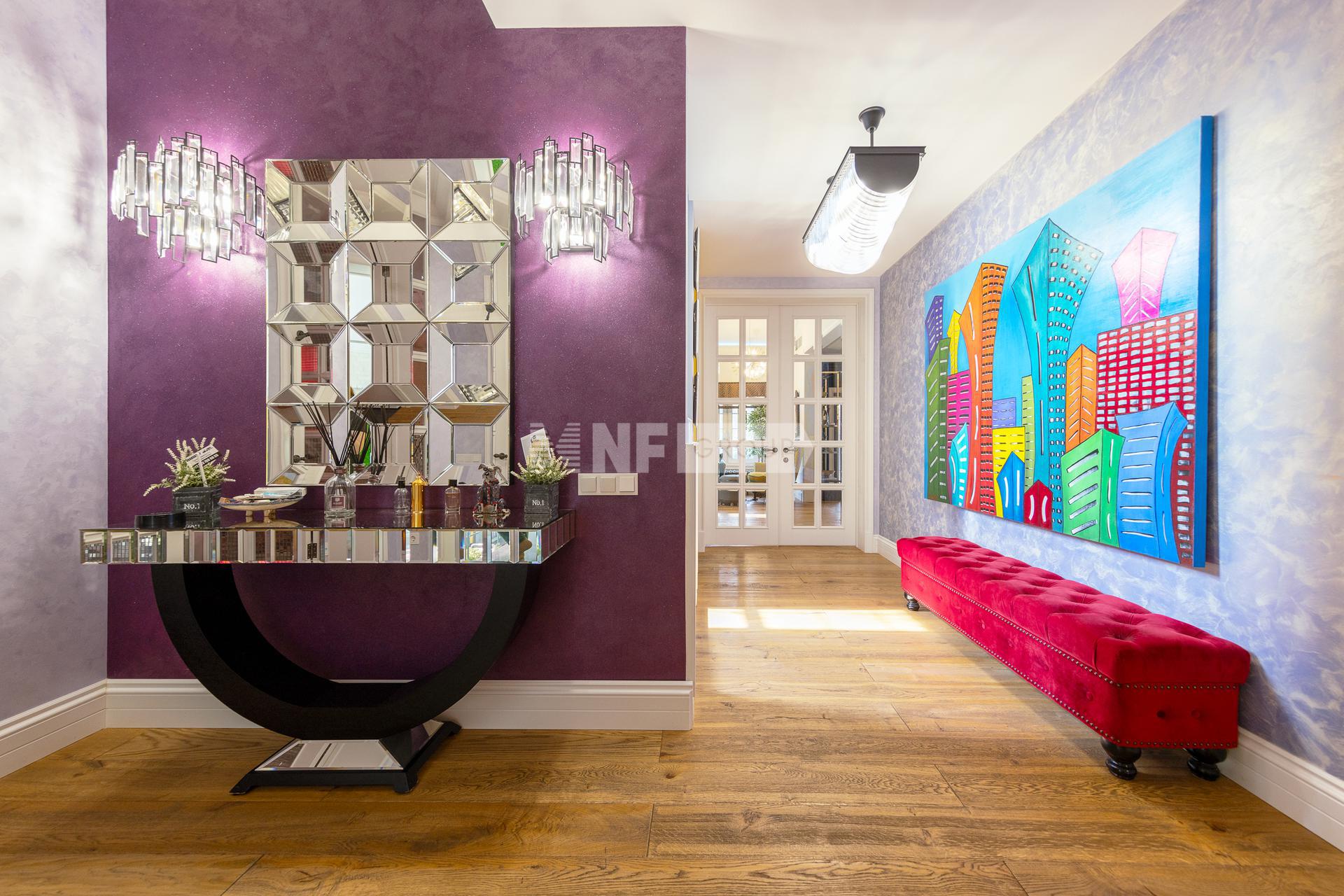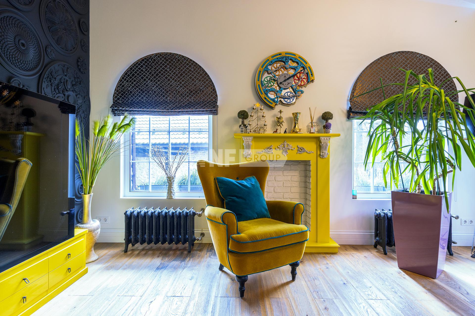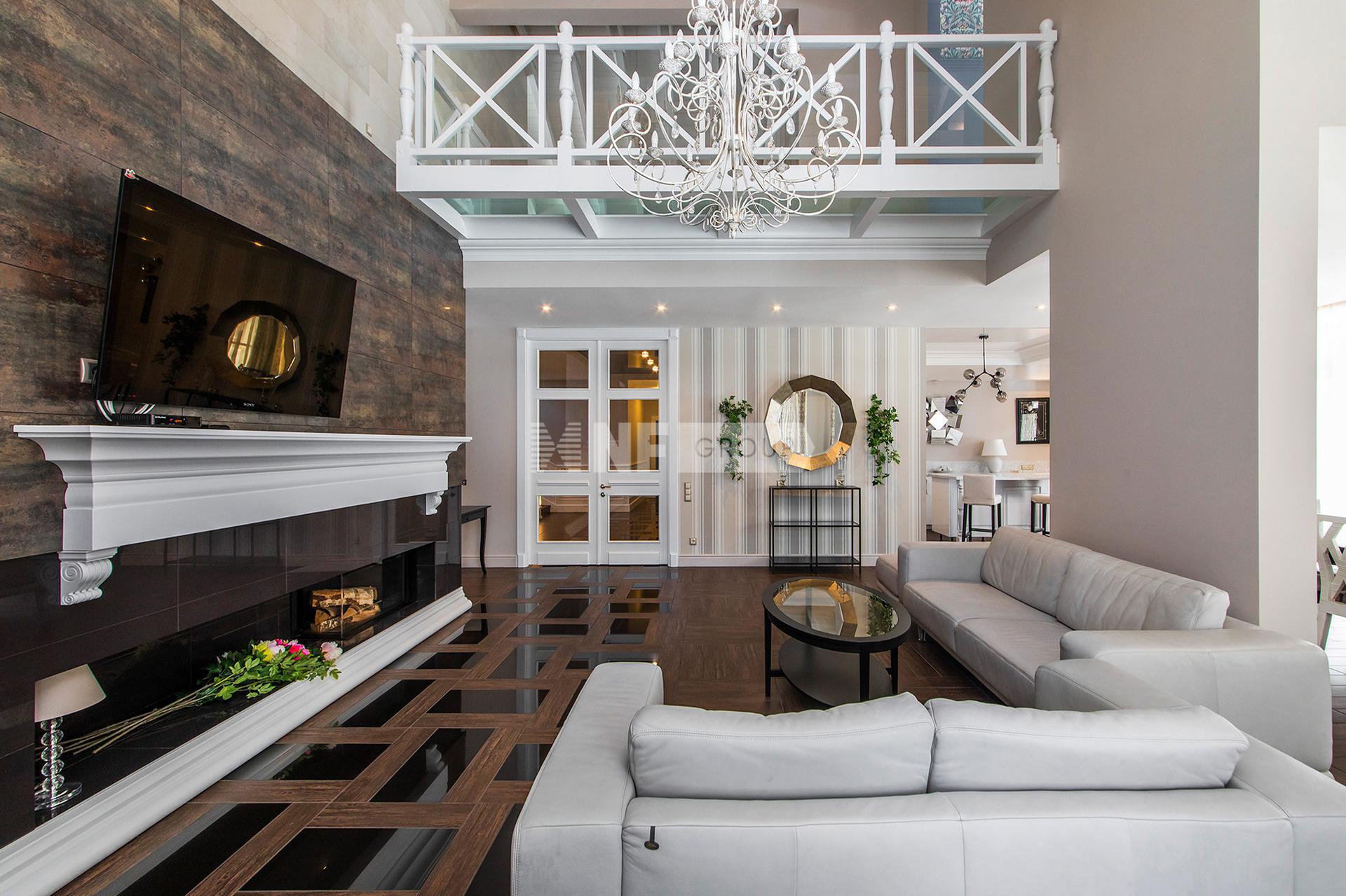 Внутренняя отделка: выполнена дизайнерская отделка с применением дорогих натуральных материалов: мрамор, травертин, оникс, массив дуба, инженерная доска. Дизайн в стиле неоготика (вдохновлен европейскими замками). На стены нанесена декоративная штукатурка, поклеены дорогие обои, декор - лепнина из гипса, расписывалась художником в течение полугода. Санузел мастер-спальни отделан ониксом с подсветкой. Спа-зона - дорогая арабская 3D плитка. В детских комнатах порталы из гималайской соли с подсветкой, фрески. Витраж на потолке в гостиной выполнен на заказ по индивидуальному проекту в технике Тиффани (стекло-олово запекание). Купол диаметром 4 м. В лестничном холле еще 3 антикварных витража. Портал камина из белого мрамора - копия камина одного из замков в Европе. Столярка массив бука. Бассейн с противотоком. На стенах витражи, на потолке имитация звездного неба. Парная: канадский кедр, абаш, панно из гималайской соли. На полу наборные мраморные панно из нескольких видов мрамора, а также малахита, азула, оникса и еще более 10 разновидностей камня. Выполнены на заказ по индивидуальному проекту. Также пол отделан мрамором, травертином, инженерной доской, ониксом (в санузле). Бетонная лестница шириной 2,1-1,5 м, ступени отделаны 2-мя видами мрамора: Crema Marfil и Emperador Light, художественная ковка ограждения. Подвесные потолки сложной формы с подсветкой. Кессоны, витражи, фрески, несколько видов подсветки, сложные ажурные лепные формы. Установлена импортная сантехника премиальных брендов Old England, Cezares в классическом стиле. Теплые полы водяные везде под плиткой и в санузлах. Электрика Legrand. Конвекторы внутрипольные, стальные панельные. Межкомнатные двери из массива бука, выполнены по индивидуальным проектам. Подоконники выполнены из мрамора Crema Marfil..