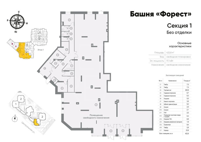Снять торговое помещение 423 м² в ЖК Солнечный парк