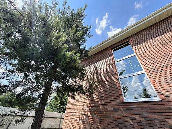 Построен из кирпича и газоблока. Остекление - трехкамерный стеклопакет; монолитная лестница с площадкой, перекрытия межэтажные - бетонная армированная плита 200мм, фундамент - бетонная плита 300мм, крыша мягкая черепица. В доме 2 этажа, 4 изолированные комнаты будут комфортны для проживания семьи из 4-6 человек. Небольшая площадь дома позволит сохранить семейный бюджет при ремонте и уплате ежегодного налога на имущество.