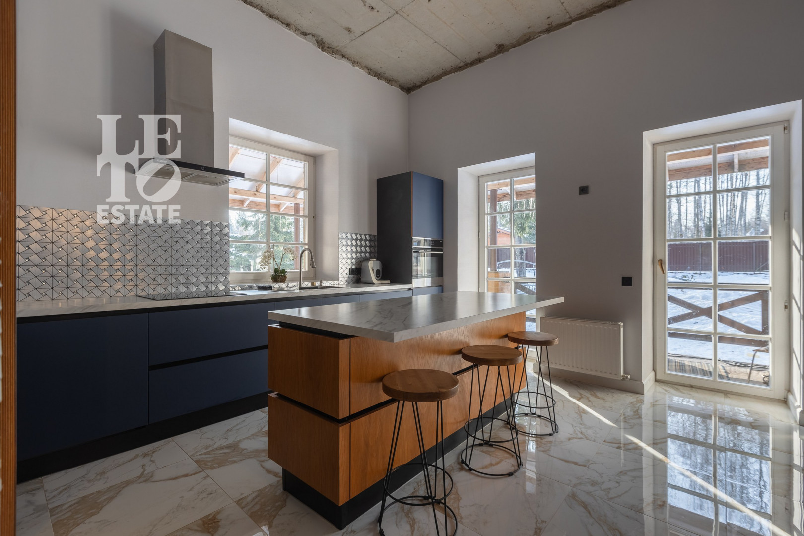 Высота потолков дома — 4,5 м.