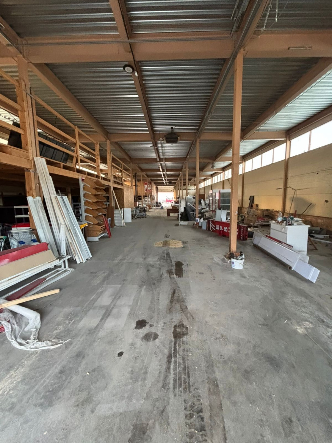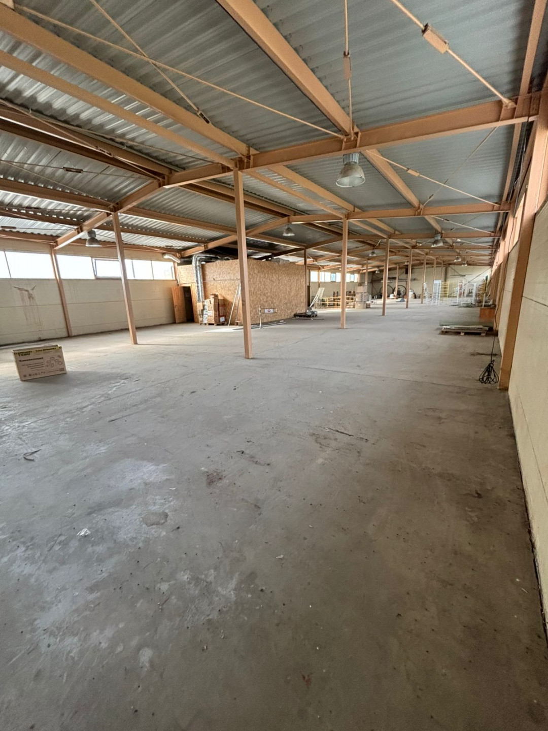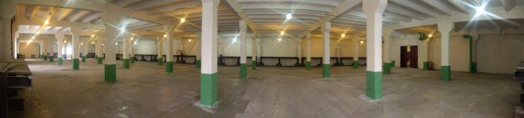 Площадь 1-го этажа 720 кв.м, размер 48м*15м., высота потолка 5 м.
