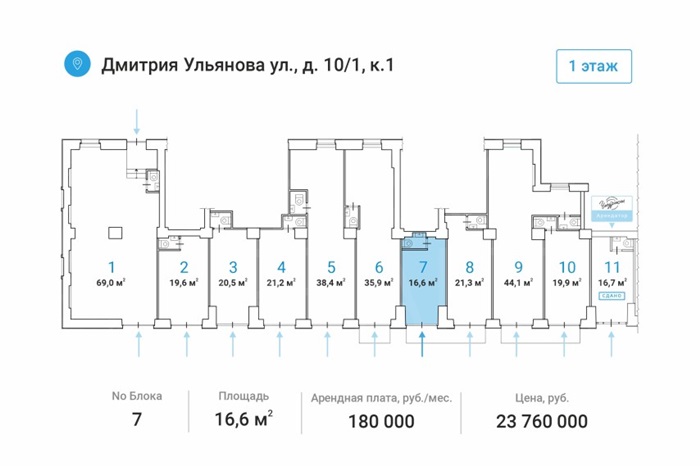 Торговое помещение. Высота потолков - 4,8 м. На плане помещение 7. Все городские инженерные коммуникации. Помещение расположено в крупном сложившимся жилом районе с высокой плотностью застройки и развитой инфраструктурой.Электричество - достаточное количество под любой вид деятельности. Отдельный вход в помещение с фасада. Отличная видимость и транспортная доступность. Отлично подойдёт в аренду под любой вид деятельности - торговое помещение, магазин, аптека, салон красоты, офис продаж, медицинский центр, кофейня и др. Размер ежегодной индексации, арендных каникул и страхового депозита - обсуждаются.Предоставление юридического адреса обсуждается дополнительно с каждым конкретным клиентом. Объект №3100-980233.