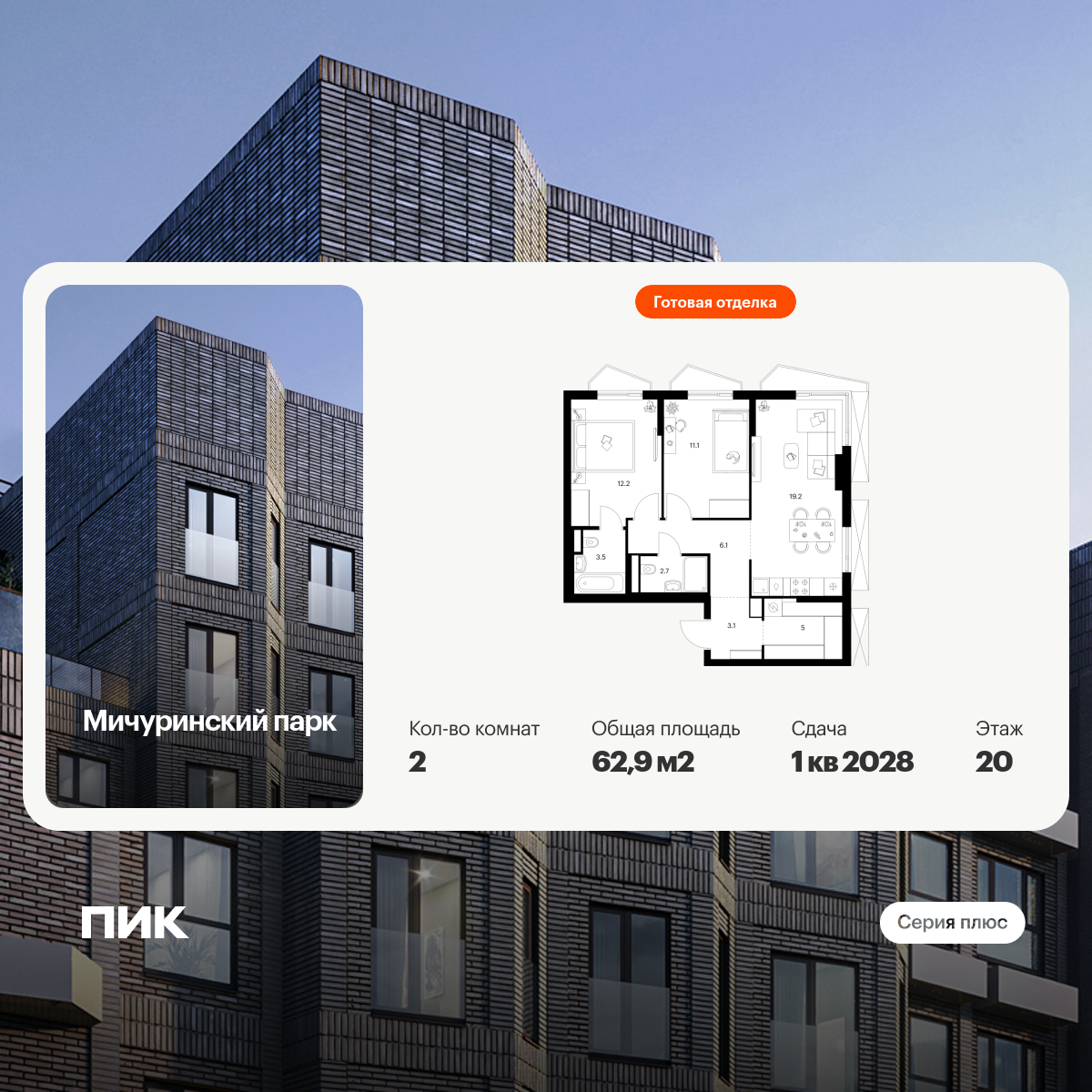 В проекте широкий выбор умных планировок: от продуманных студий до трёхкомнатных квартир. Есть варианты с мастер-спальней с собственной ванной и гардеробной, кухней-гостиной, сквозным санузлом и кладовой. Благодаря окнам в пол, балконам и террасам в помещениях будет много света и дополнительного пространства. Можно купить квартиру с готовой отделкой и видом на Останкинскую башню. Артикул - 1040292