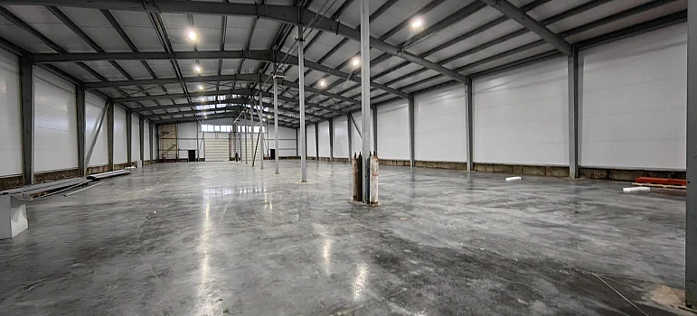 Полы: Бетонные с антипылевым покрытием, нагрузка до 7 тонн/м²
