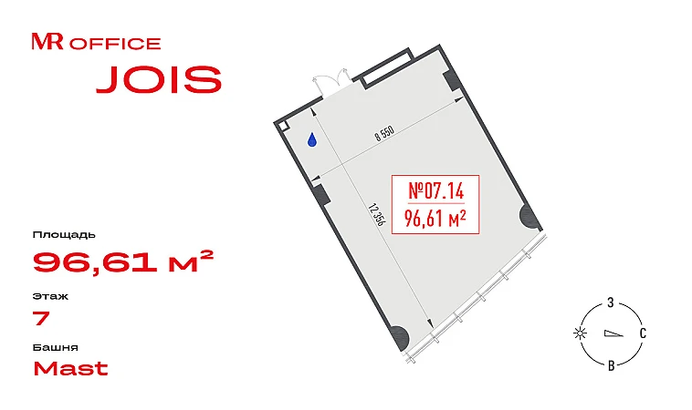 Предлагается офисное помещение 96.61 кв.м на 7 этаже БЦ Jois.