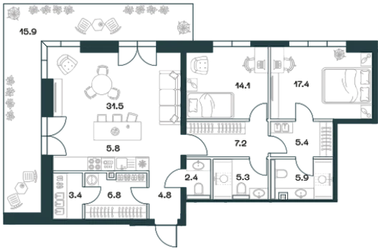 Стоимость квартиры со скидкой 10% при 100% оплате 110990970 руб.