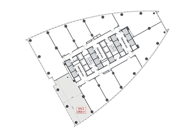 Предлагается офисное помещение 210.06 кв.м на 13 этаже БЦ Jois.