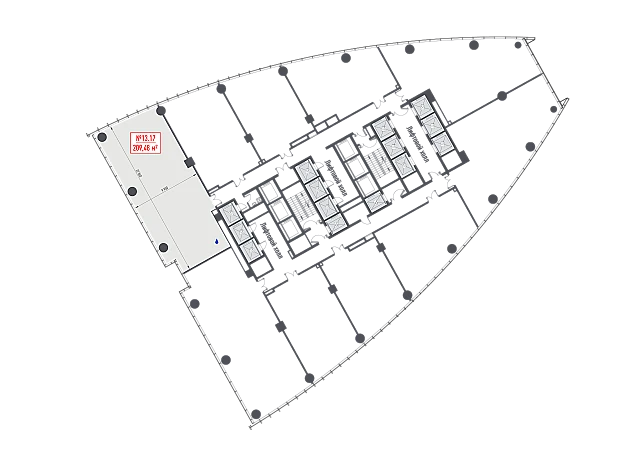 Предлагается офисное помещение 209.48 кв.м на 13 этаже БЦ Jois.