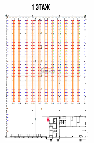 - Ровный бетонный пол с антипылевым - покрытием и несущей способностью 8 000 кг/м2