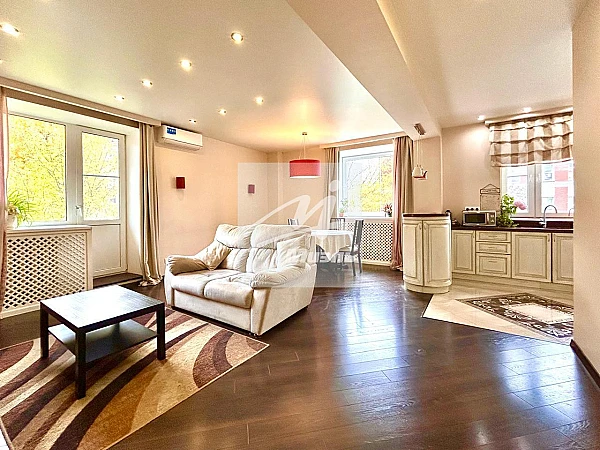 Двенадцать лет назад в квартире был произведен капитальный ремонт с заменой электрики, окон, полов, сантехники. Санузел совмещенный, просторный с душевой кабиной, полы на кухне и ванной - плитка с подогревом, в комнатах ламинат, кухня встроенная, фасады из натурального дерева в очень хорошем состоянии, есть встроенные шкафы в прихожей и одной из спален, кондиционер. Время идет, дизайнерская мысль развивается, можно все переделать в своем вкусе и стиле.