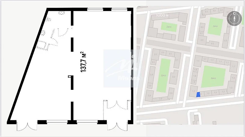 - Помещение на основном въезде в ЖК между двух аптек, Пятерочкой и Магнитом. Напротив — парковка и пешеходный переход.