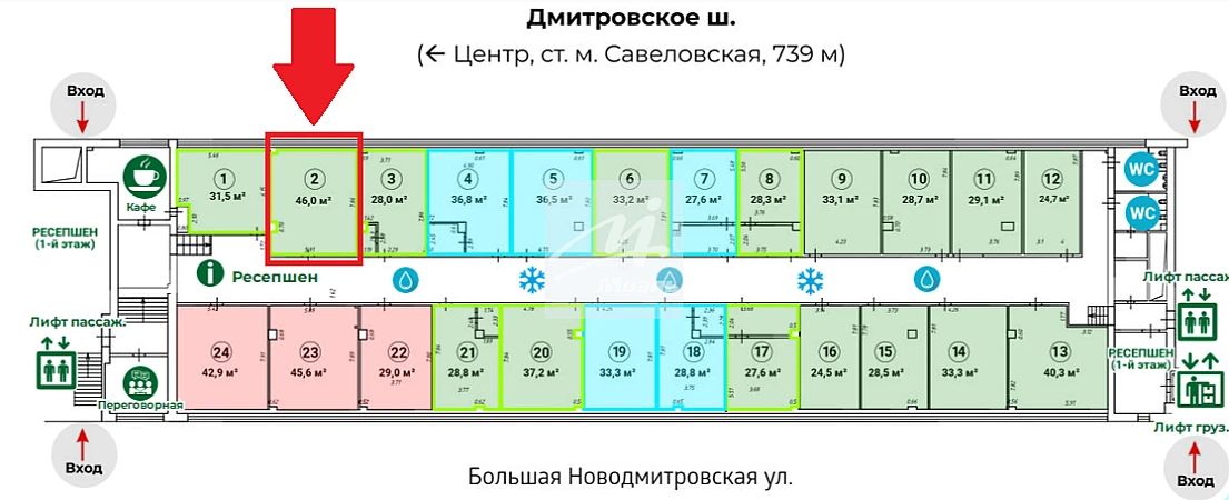 Продажа готового арендного бизнеса/офисного помещения в Бизнес Центре по адресу: г.Москва, м. Савеловская, р-н Бутырский, Большая Новодмитровская, 23, стр. 2.